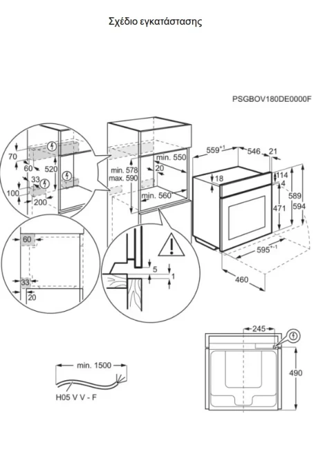 Διαστάσεις: (ΥxΠxΒ): 594x595x567 mm,