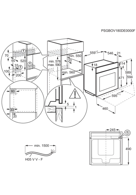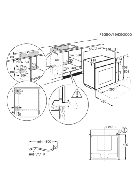- Διαστάσεις εντοιχισμού ΥxΠxΒ, mm: 590x560x550