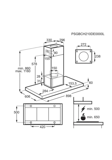 - Τύπος εγκατάστασης: Απορροφητήρας νησίδα, πλάτος 90 cm