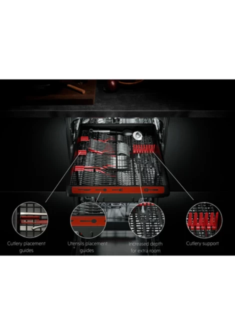 Το συρτάρι MaxiFlex είναι σχεδιασμένο να χωράει μαχαιροπίρουνα και μαγειρικά εργαλεία διαφορετικών μεγεθών και σχημάτων. Με τα εύκαμπτα διαχωριστικά και το μεγιστοποιημένο βάθος, το κάθε φορτίο είναι ρυθμιζόμενο. Ουσιαστικά, το κάθε αντικείμενο φορτώνεται και πλένεται άνετα με τη μία.