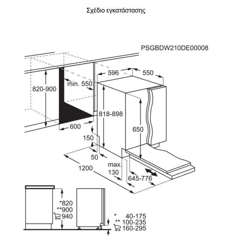 Διαστάσεις (ΥxΠxΒ mm): 818x596x550
