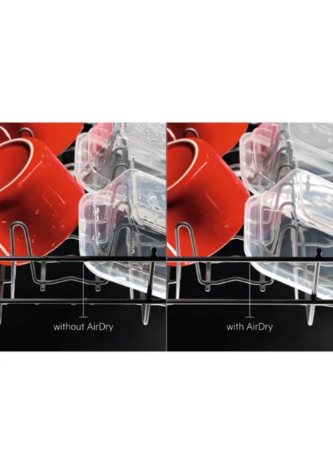 Το AirDry προσφέρει έως και 3 φορές καλύτερη απόδοση στεγνώματος σε σύγκριση με κλειστά συστήματα. Η πόρτα ανοίγει αυτόματα στο τέλος της φάσης στεγνώματος και ο αέρας κυκλοφορεί μέσα στο μηχάνημα. Τα πιάτα βγαίνουν τελείως στεγνά. Κάθε φορά.