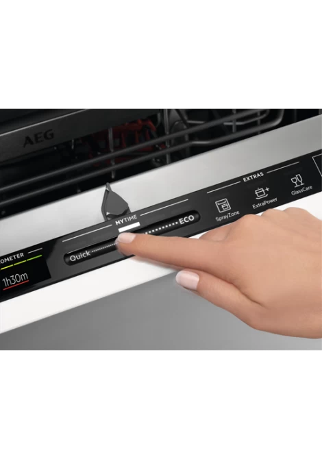 Με το 6000 QuickSelect πλυντήριο πιάτων μπορείτε να χρησιμοποιήσετε τον μοχλό My Time (Η Ώρα μου) για να επιλέξετε τον χρόνο του κύκλου. Το Ecometer θα εμφανίζει την οικονομική απόδοση για καθεμία από τις πιθανές επιλογές. Έτσι, μπορείτε να επιλέξετε εύκολα την καλύτερη επιλογή με μόλις ένα άγγιγμα.