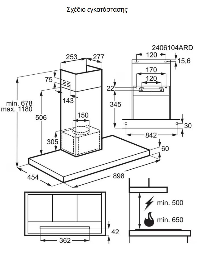 AEG GB67D91HL 6000 Hob2Hood Απορροφητήρας Καμινάδα Τοίχου 90cm