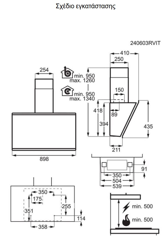 Καμινάδα τοίχου 90cm,