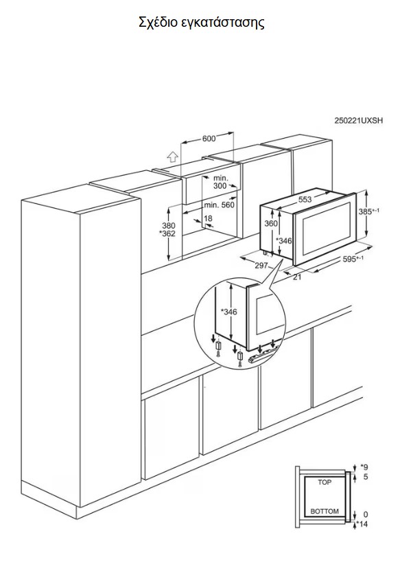 Ο κομψός, μινιμαλιστικός σχεδιασμός του φούρνου μικροκυμάτων σε γυαλιστερό μαύρο χρώμα ταιριάζει με τον φούρνο και άλλες συσκευές.