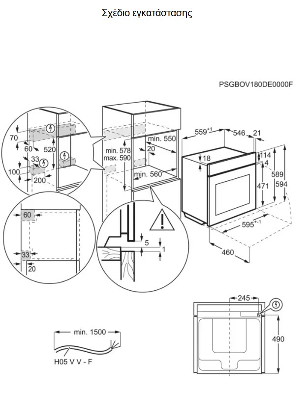 Διαστάσεις: (ΥxΠxΒ): 589x594x560 mm,