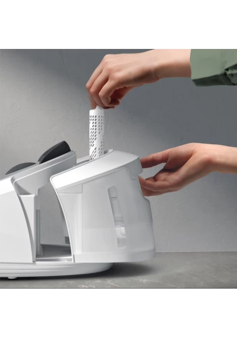 Το Σύστημα αποσκλήρυνσης νερού συνδυάζει έναν μοναδικό Ενεργοποιητή μαλακού νερού και μια λειτουργία FlushClean που διατηρεί τον ατμό καθαρό και μαλακό, παρατείνοντας τη διάρκεια ζωής του προϊόντος. Μια ηλεκτρονική υπενθύμιση σας ενημερώνει για το χρόνο αλλαγής του ενεργοποιητή.