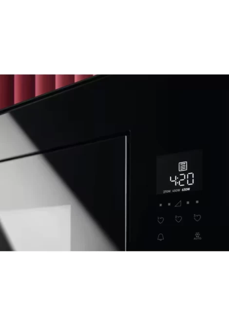 Ο κομψός, μινιμαλιστικός σχεδιασμός του φούρνου μικροκυμάτων σε γυαλιστερό μαύρο χρώμα ταιριάζει με τον φούρνο και άλλες συσκευές.