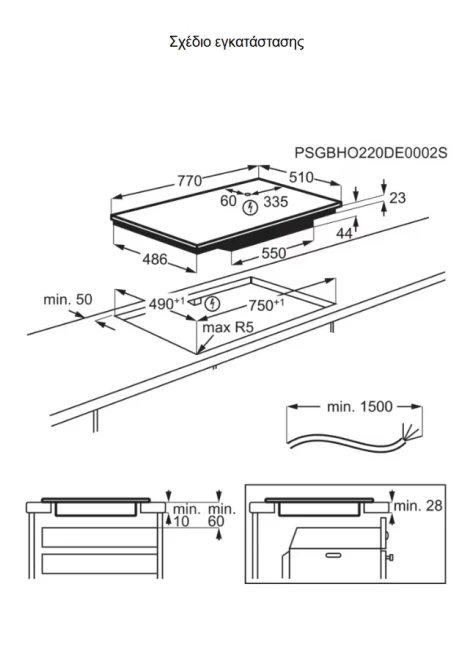 Διαστάσεις εστίας (Πλάτος,Βάθος) , mm: 780x520
