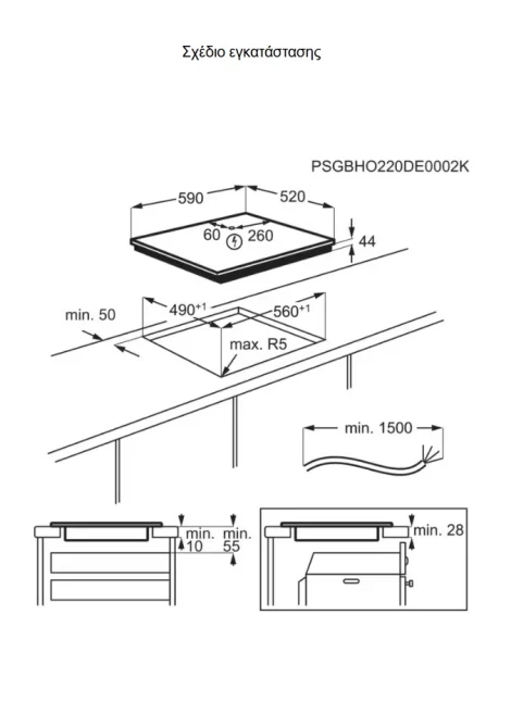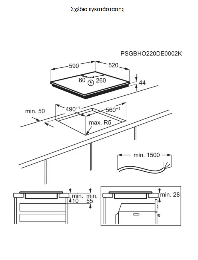 Διαστάσεις εστίας (Πλάτος,Βάθος) , mm: 590x520