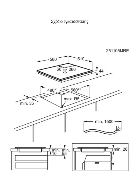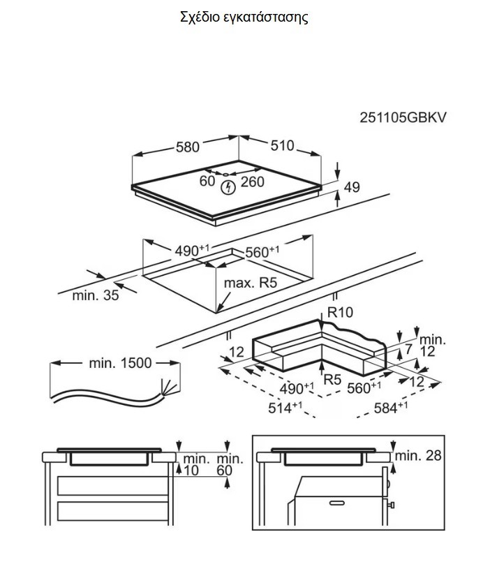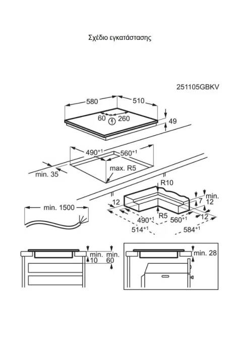 Διαστάσεις εστίας (Πλάτος,Βάθος) , mm: 580x510