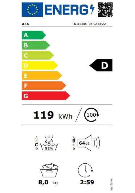 AEG TR7G8BG 7000 SensiDry Στεγνωτήριο Ρούχων 8kg (916900561)