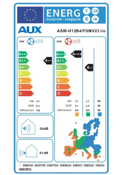 Το κλιματιστικό ανήκει στην ενεργειακή κλάση A++, στην ψύξη και στην ενεργειακή κλάση A+++ στη θέρμανση (θερμή ζώνη). Η ενεργειακή κλάση μετριέται σε μια χρωματική κλίμακα επτά βαθμίδων από Α+++ έως D, με την κλάση Α+++ να είναι η αποδοτικότερη, ενώ αντίθετα η κλάση D, η ελάχιστα αποδοτική.