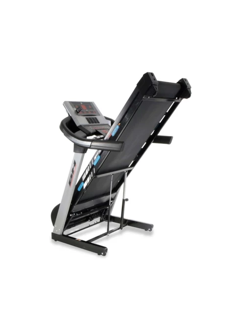 Διαθέτει σύστημα αναδίπλωσης με διπλό βραχίονα στήριξης για μεγαλύτερη ασφάλεια ώστε να αποθηκεύετε εύκολα τον διάδρομο στον χώρο που επιθυμείτε. Σηκώστε το αμορτισέρ με το ένα χέρι μέχρι να κλειδώσει η ασφάλεια του υδραυλικού βραχίονα στήριξης και έπειτα αν επιθυμείτε μετακινήστε τον διάδρομο εύκολα με τους πρακτικούς τροχούς που είναι τοποθετημένοι στη βάση του.