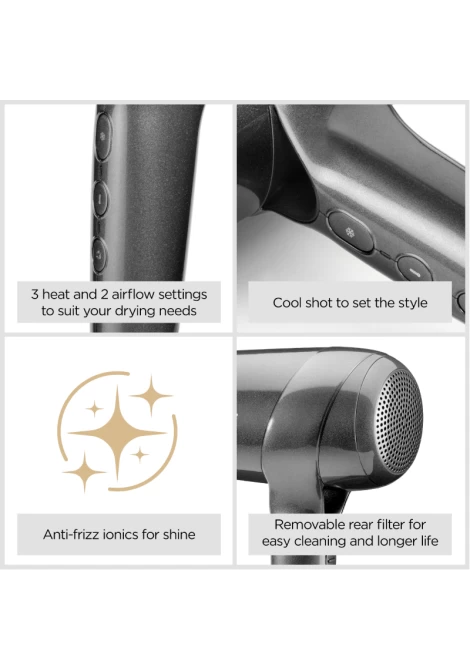 3 ρυθμίσεις θερμότητας / 2 ρυθμίσεις ροής αέρα