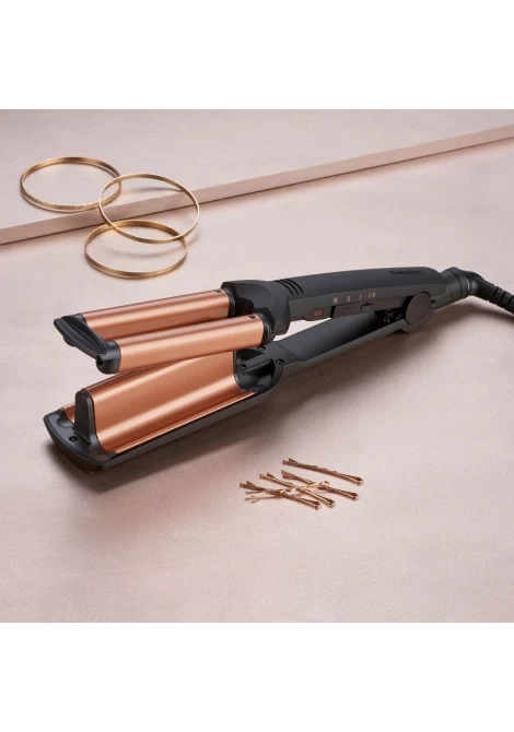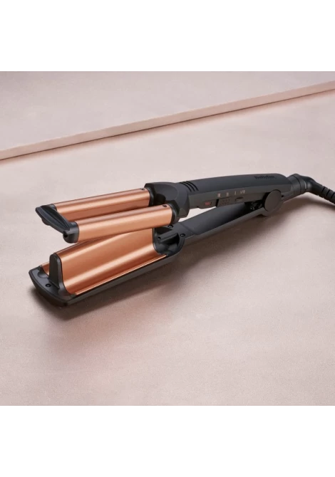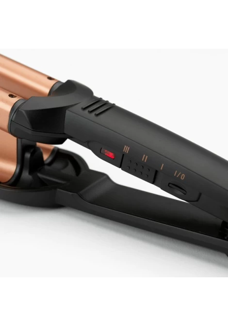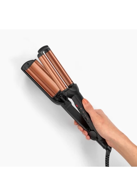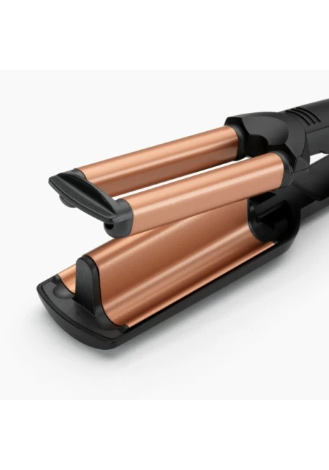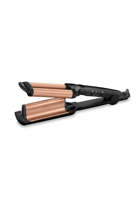 Το Deep Waves W2447E είναι ένα επαγγελματικό ηλεκτρικό ψαλίδι που δημιουργεί εύκολα έντονους κυματισμούς με φυσικό αποτέλεσμα. Οι φαρδιές κεραμικές πλάκες με τουρμαλίνη προσφέρουν λείανση και προστασία από το φριζάρισμα, ενώ η Προηγμένη Κεραμική Τεχνολογία εξασφαλίζει σταθερή θερμοκρασία έως και 200°C για γρήγορο και ομοιόμορφο styling.