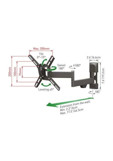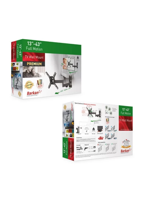 Barkan 2400.B Βάση Τηλεόρασης Τοίχου 13'' - 43'' με Διπλό Βραχίονα και Κλίση (950021)