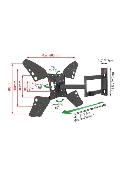 Barkan 3400L.B Βάση Τηλεόρασης Τοίχου 13'' - 83'' με Βραχίονα και Κλίση (950028)