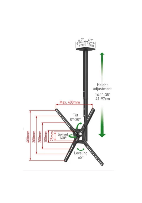 Barkan 3500B.B Βάση Τηλεόρασης Οροφής 13'' - 65'' Τηλεσκοπική (950027)