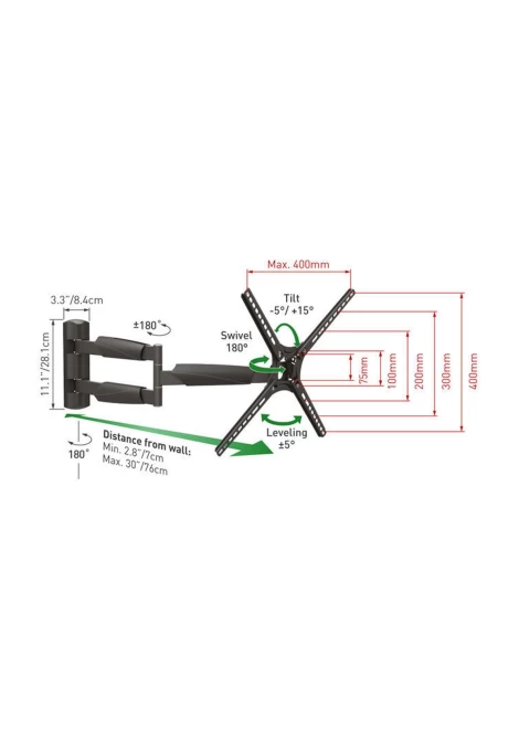 Barkan BM343XL Βάση Τηλεόρασης Τοίχου 13'' - 65'' με Βραχίονα και Κλίση (950026)