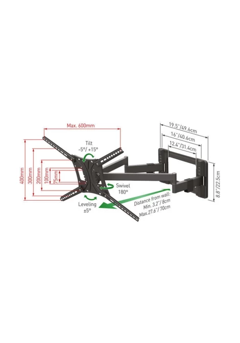 Barkan BM464L Βάση Τηλεόρασης Τοίχου 13'' - 90'' με Διπλό Βραχίονα και Κλίση (950030)