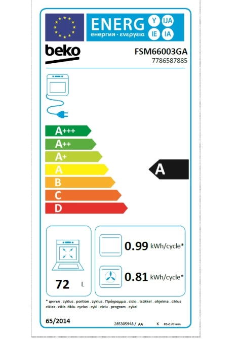 Beko FSM 66003 GA Εμαγιέ Κουζίνα