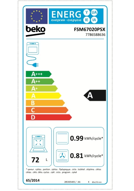 Beko FSM 67020 PSX Εμαγιέ Κουζίνα