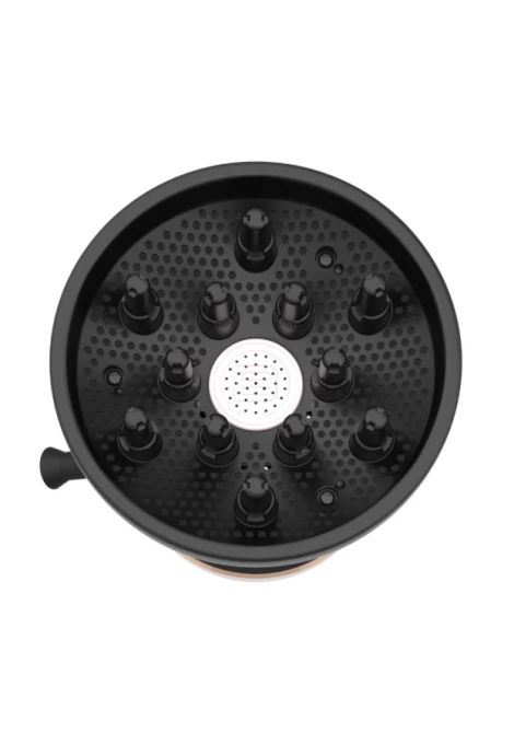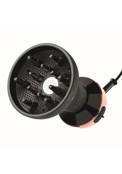 Η ειδική γρίλια του διανομέα έχει μελετηθεί για να αποφεύγεται το ενοχλητικό πιάσιμο των μαλλιών στον ανεμιστήρα, κατανέμει ομοιόμορφα τον αέρα και μαζί με τα 12 μακριά δάχτυλα και διατηρεί τη φυσική ελαστικότητα στις μπούκλες, έτσι ώστε να διατηρούν τη φόρμα τους και να είναι απαλές.