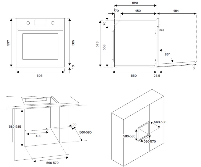 | Διαστάσεις εντοιχισμού (ΠxYxB) | 56,0-57,0 x 58,0-58,5 x 56,0-58,0 εκ. |