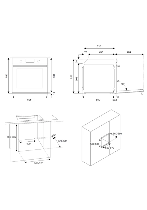 | Διαστάσεις εντοιχισμού (ΠxYxB) | 56,0-57,0 x 58,0-58,5 x 56,0-58,0 εκ. |