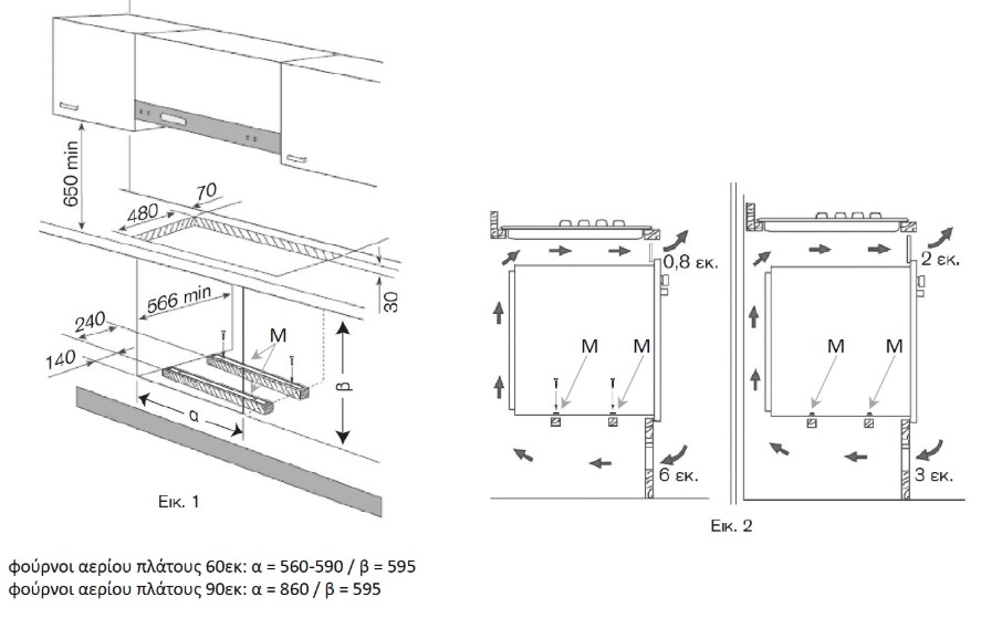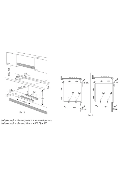 | Διαστάσεις εντοιχισμού (ΠxYxB) | 85,4-86,4 x 58,5-58,8 x min 56,0 εκ. |