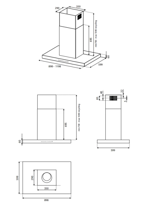 | Τοποθέτηση Απορροφητήρα | Επιτοίχιος σε σχέδιο ανάποδου "Τ" |