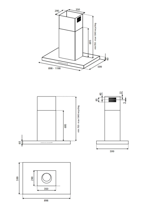 | Τοποθέτηση Απορροφητήρα | Επιτοίχιος σε σχέδιο ανάποδου "Τ" |