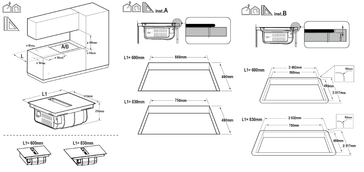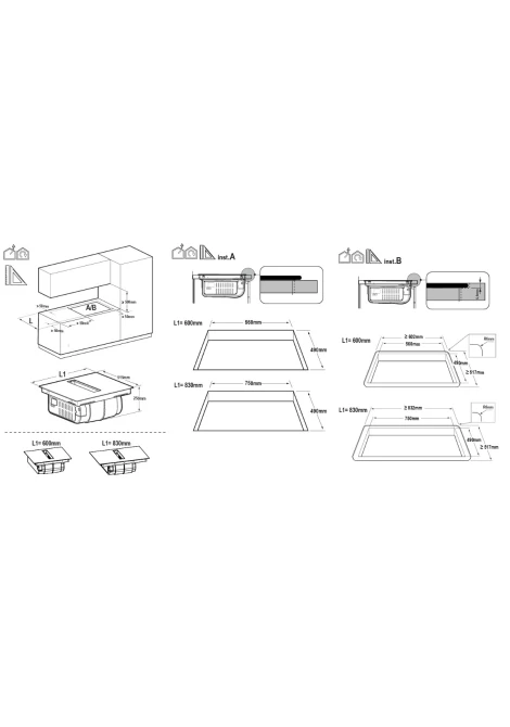 | Διαστάσεις κοπής πάγκου (ΠxΒ) | 560 x 490 χιλ. και ελάχιστο κενό ύψους 300 χιλ. κάτω από την εστία |