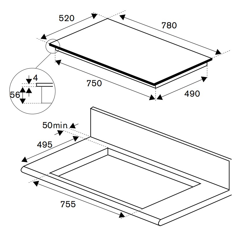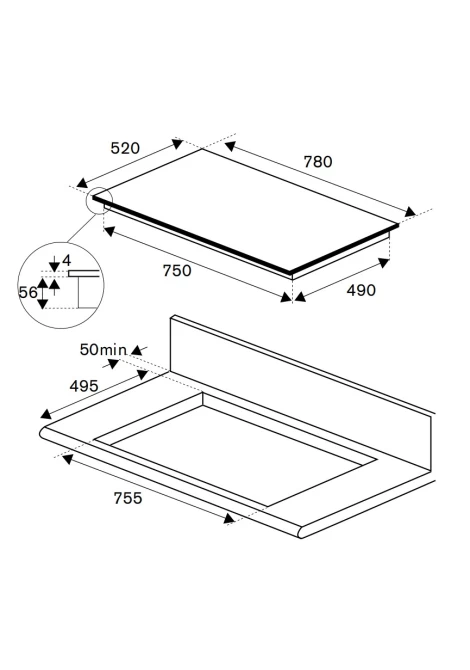 | Διαστάσεις κοπής πάγκου (ΠxΒ) | 755 x 495 χιλ. |