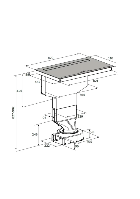 | Διαστάσεις κοπής πάγκου (ΠxΒ) | 825 x 480 χιλ. και ελάχιστο κενό ύψους 70 χιλ. κάτω από την εστία |