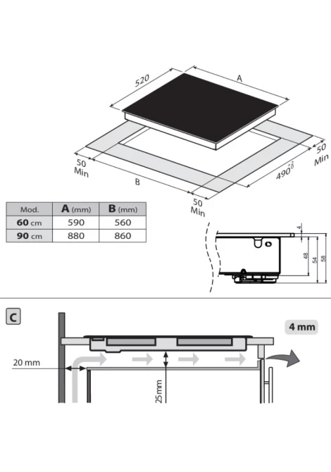 | Διαστάσεις κοπής πάγκου (ΠxΒ) | 860 x 490 χιλ. (ελαχ.βάθος 60χιλ.) |