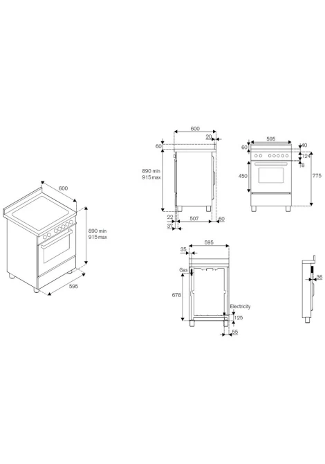 60X60εκ. - 4 εστίες επαγωγικές - φούρνος ηλεκτρικός