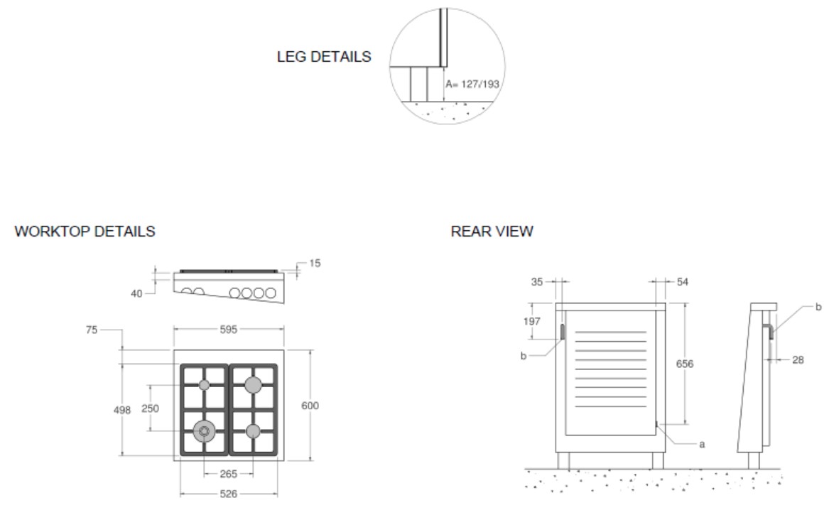 | Τύπος / ισχύς εστίας πίσω αριστερά | 1 βοηθητική αερίου / 1,00kW |