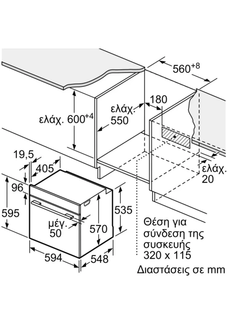 Διαστάσεις συσκευής (ΥxΠxΒ cm): 59,5 x 59,4 x 54,8
