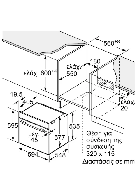 Διαστάσεις συσκευής (ΥxΠxΒ cm): 59,5 x 59,4 x 54,8