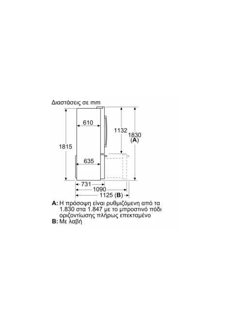 Διαστάσεις (ΥxΠxΒ cm): 183 x 90,5 x 70,6