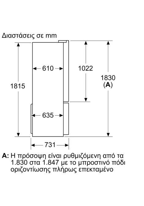 Διαστάσεις (ΥxΠxΒ cm): 183 x 90,5 x 73,1
