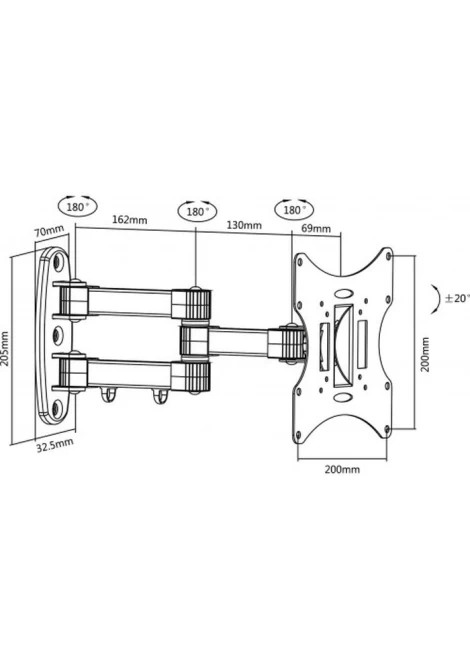 Βάση τηλεόρασης 23”- 42”με κίνηση +/- 20 μοίρες.Περιστροφή 180 μοίρες.