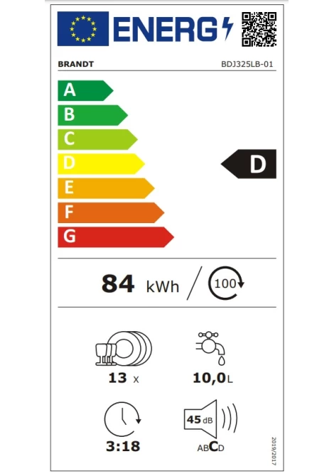 Brandt BDJ325LB Εντοιχιζόμενο Πλυντήριο Πιάτων 60 cm