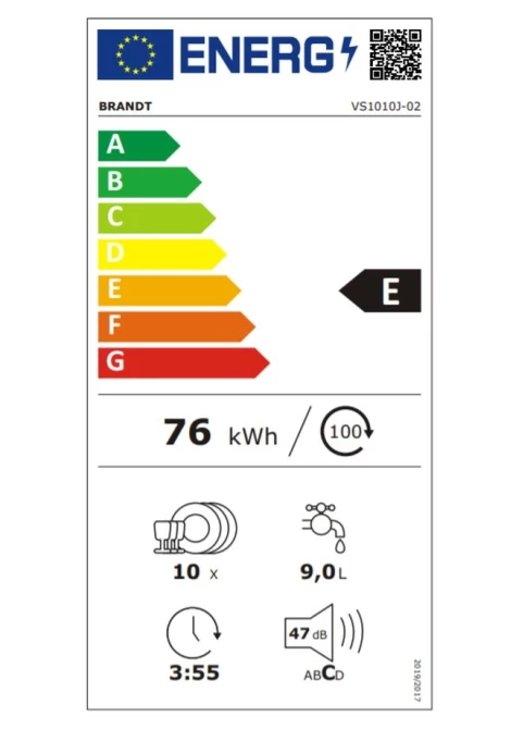 Brandt VS1010J Εντοιχιζόμενο Πλυντήριο Πιάτων 45 cm