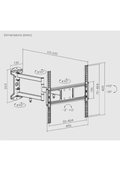 The LPA52-443WL super economy full-motion mount accommodates most 32"-55" flat panel TVs up to 35kg/77lbs. Its lengthened arms extend out 610mm from wall and allows full-motion capabilities. Full motion allows maximum flexibility — tilts and swivel your TV for easy viewing from any seat in a room. Its post-installation leveling adjustment ensures the TV is perfectly positioned on the wall. Integrated cable management system keeps cables organized and protected.