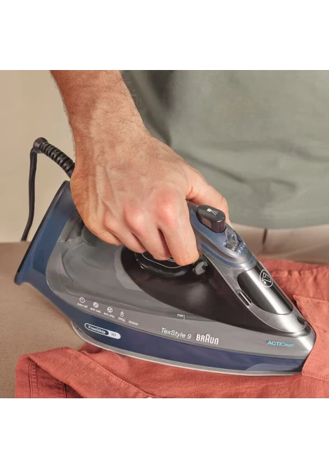 Το TexStyle 9 είναι το πιο ισχυρό ατμοσίδερο της Braun που διαθέτει ισχύ 3200 watt και είναι εξοπλισμένο με την πρώτη τεχνολογία FreeGlide 3D στον κόσμο. Επιπλέον, διαθέτει το νέο σύστημα ActiCIean. Αυτός ο μοναδικά σχεδιασμένος συλλέκτης αλάτων κάνει την αφαλάτωση μικρότερη ταλαιπωρία και 100% πιο αποτελεσματική*, παρατείνοντας τη διάρκεια ζωής του ατμοσίδερου σας. Το TexStyle 9 διαθέτει και την Τεχνολογία iCare που προστατεύει τα ρούχα σας με ασφαλή θερμοκρασία για όλα τα είδη υφασμάτων — με έξυπνη τεχνολογία προστασίας υφασμάτων.