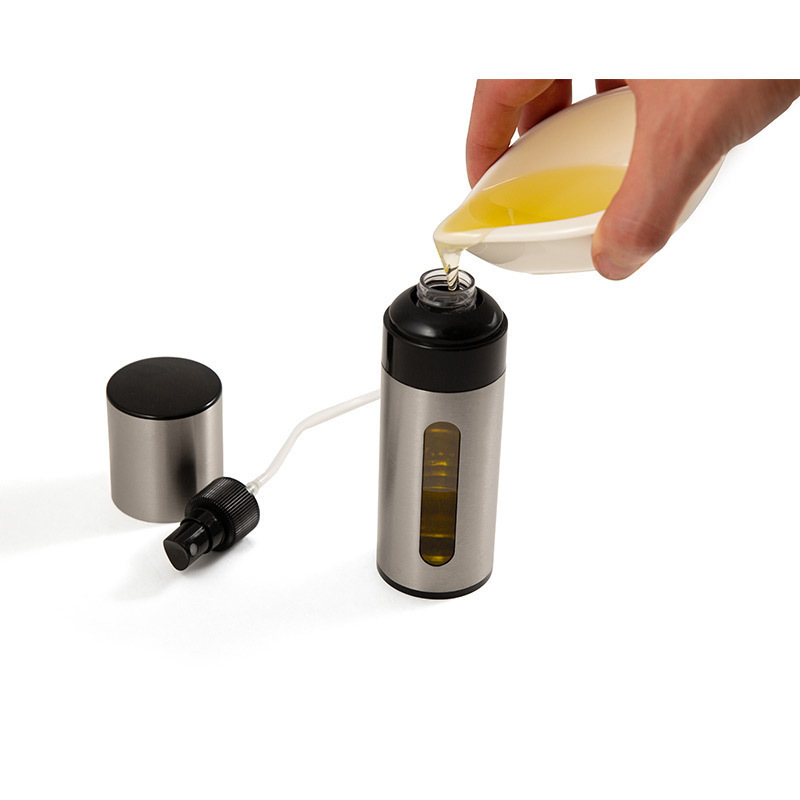 Το στόμιο ψεκάζει σε μορφή νέφους το λάδι και έτσι επαλείφεται το κρέας, το ψάρι, τα λαχανικά ή ότι άλλο θέλετε να ψήσετε ομοιόμορφα σε όλη την επιφάνεια του, γρήγορα και χωρίς να στάζουν μεγάλες ποσότητες λαδιού.